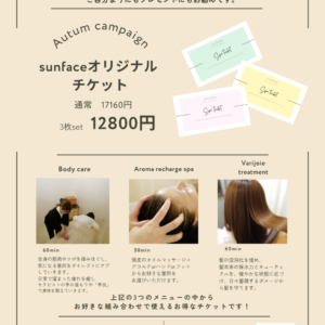 大人気のチケットを販売いたします❤ 販売期間は11月30日まで! 【オリジナルチケット】 3枚set…12800円 (内容)・ボディケア60分 ・ア…