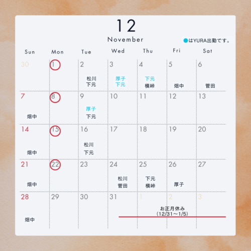 Atsuko…YURA出勤→3日、9日、11日、26日