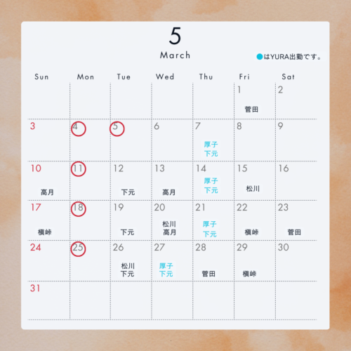 Atsuko…YURA出勤→7日、14日、21日、27日